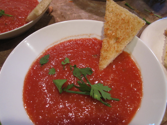 Refreshing! Great way to use your garden harvest. Serves 2-4 In a food processor combine the following ingredients: 2 lg